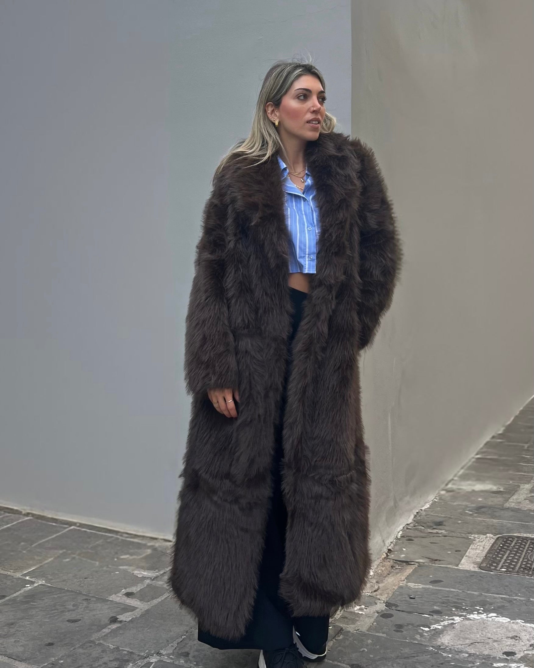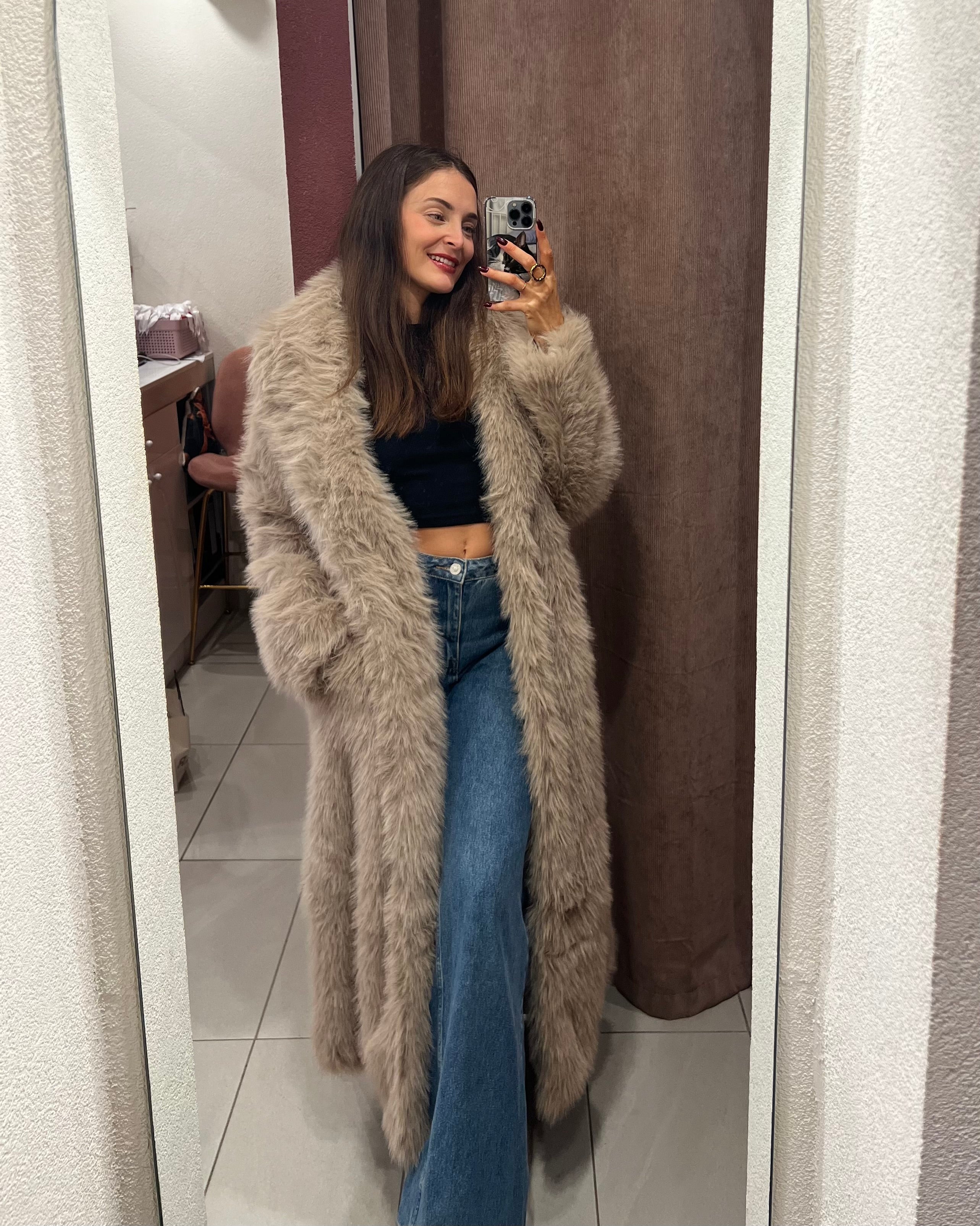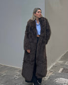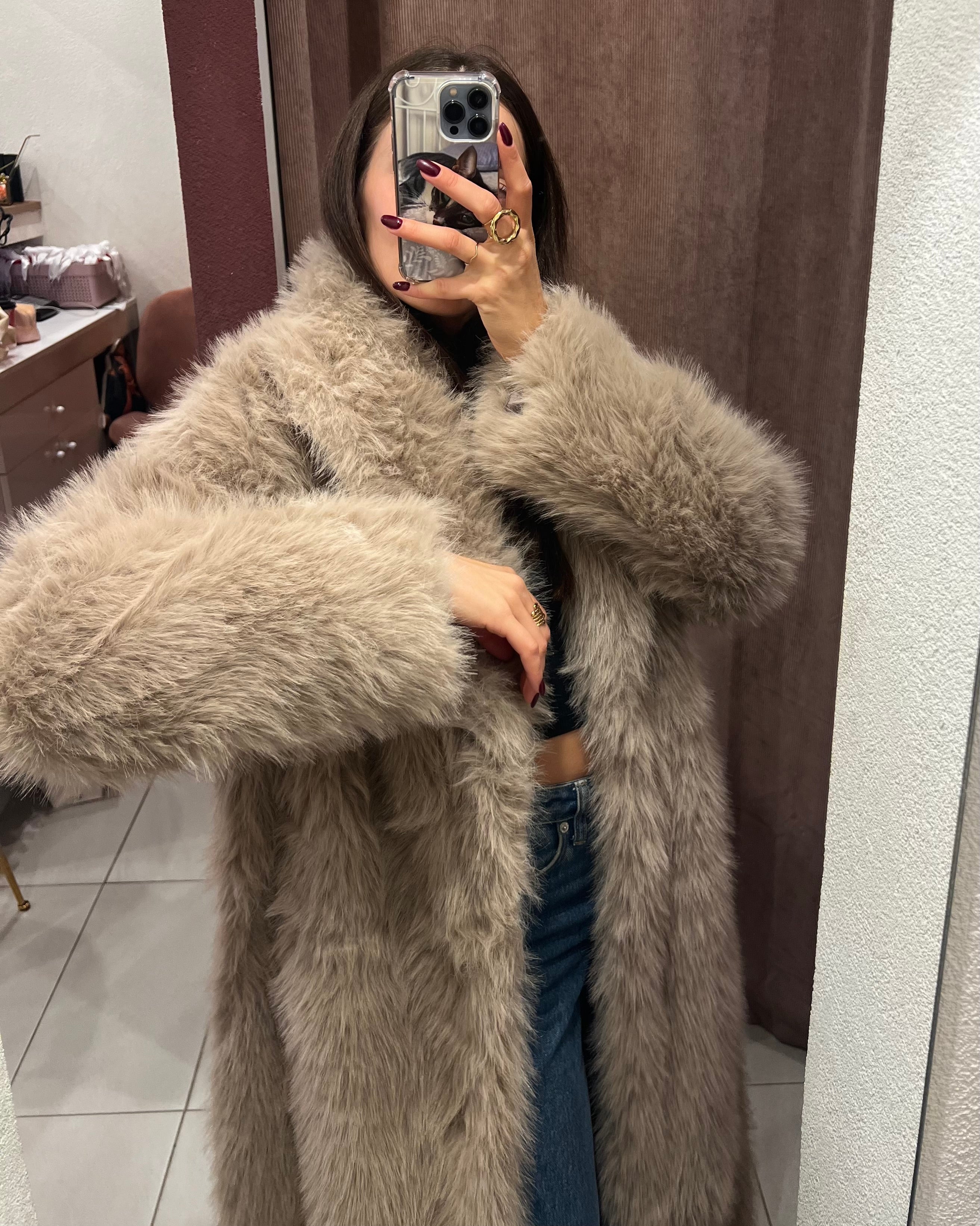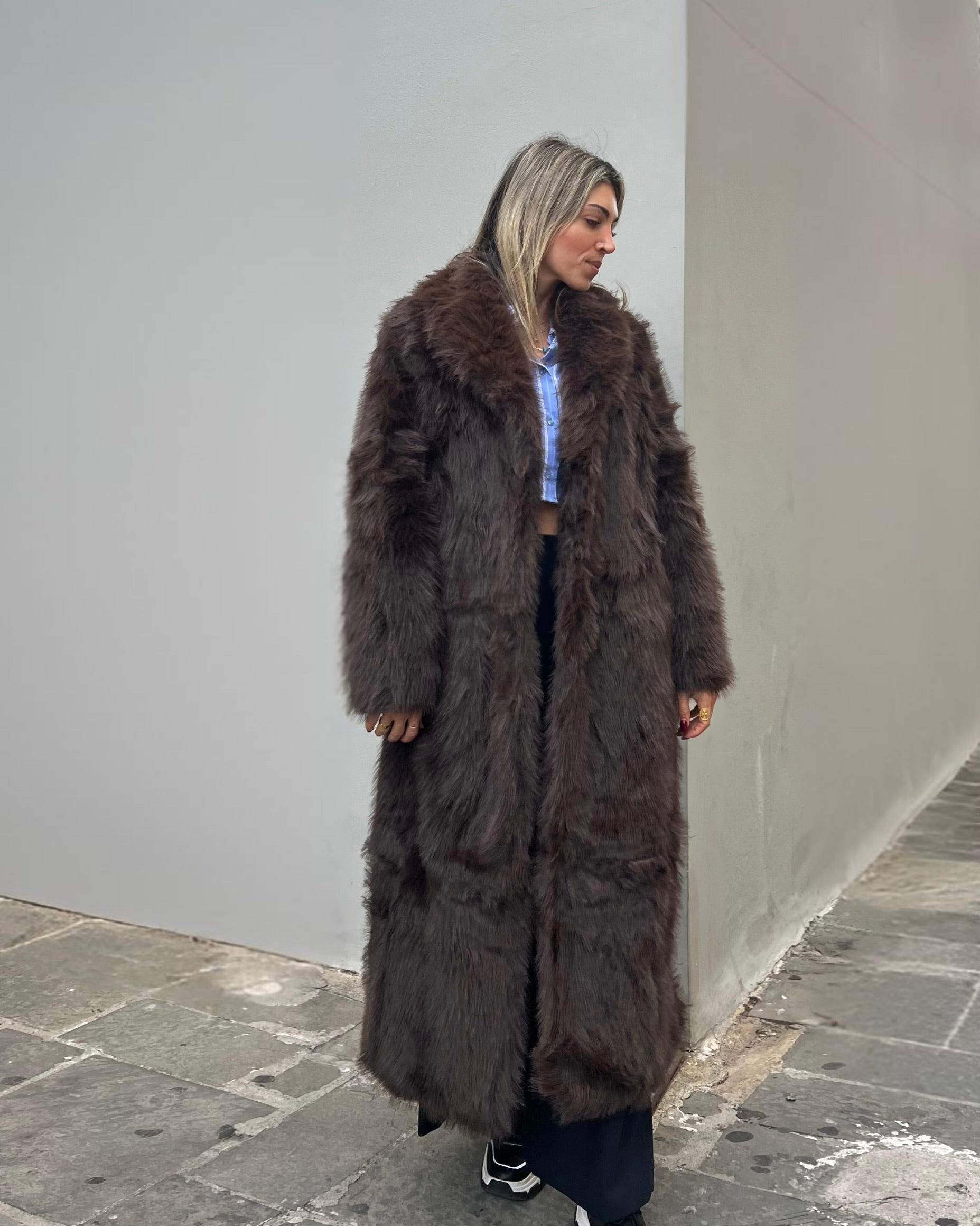 Μακριά γούνα με γιακά και κλείσιμο με clips