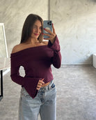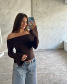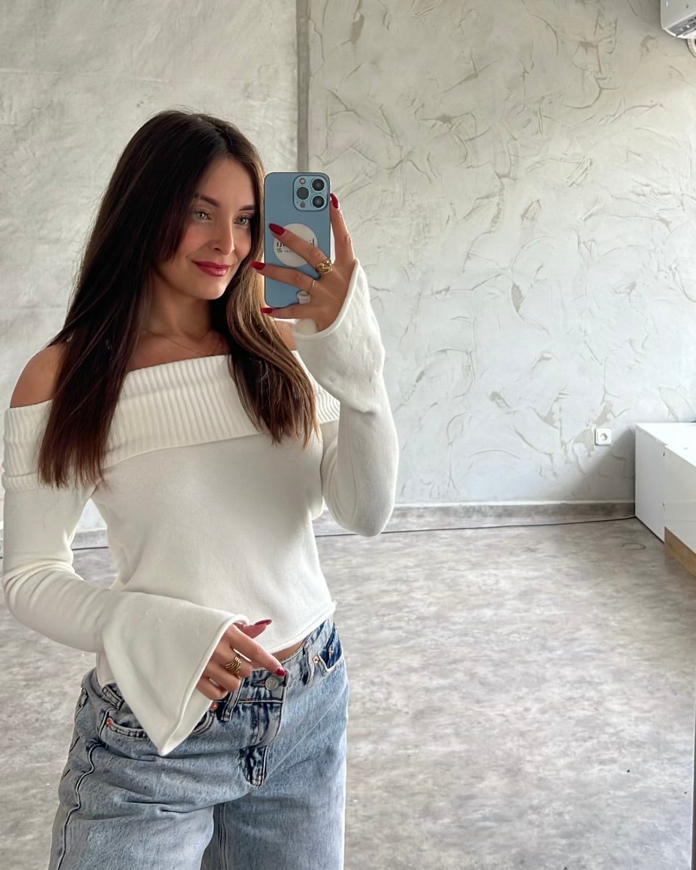 Έξωμο πλεκτό τοπ και καμπάνα μανίκι