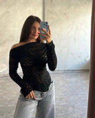 Δαντελένιο ημιδιάφανο top με άνισο τελείωμα