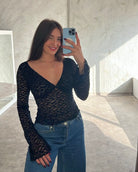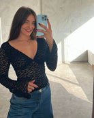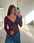 Βελούδινο δαντελένιο τοπ με V λαιμόκοψη