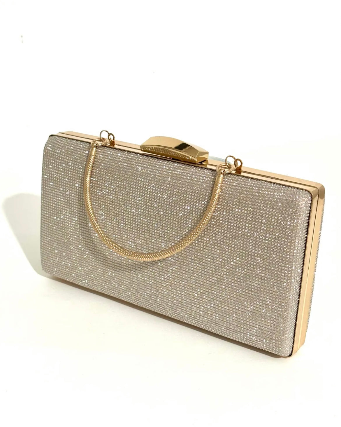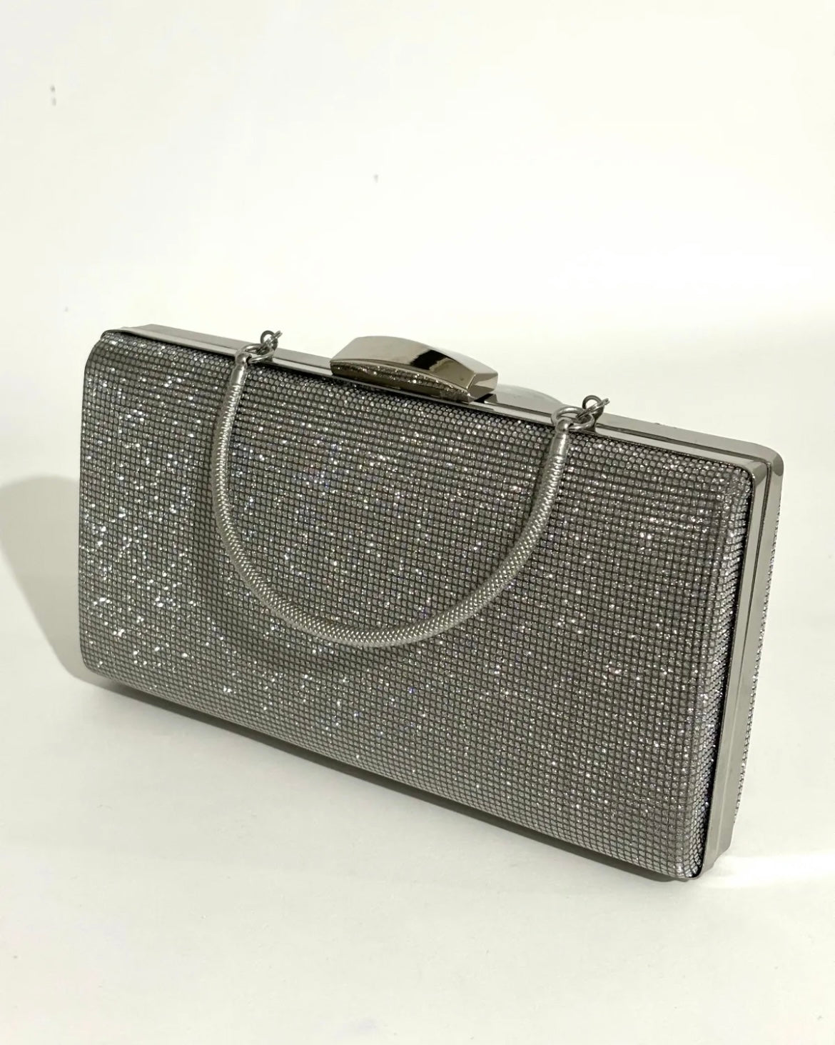Τετράγωνη τσάντα χειρός με glitter και πρόσθετο χερούλι