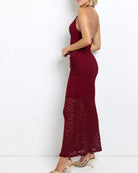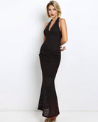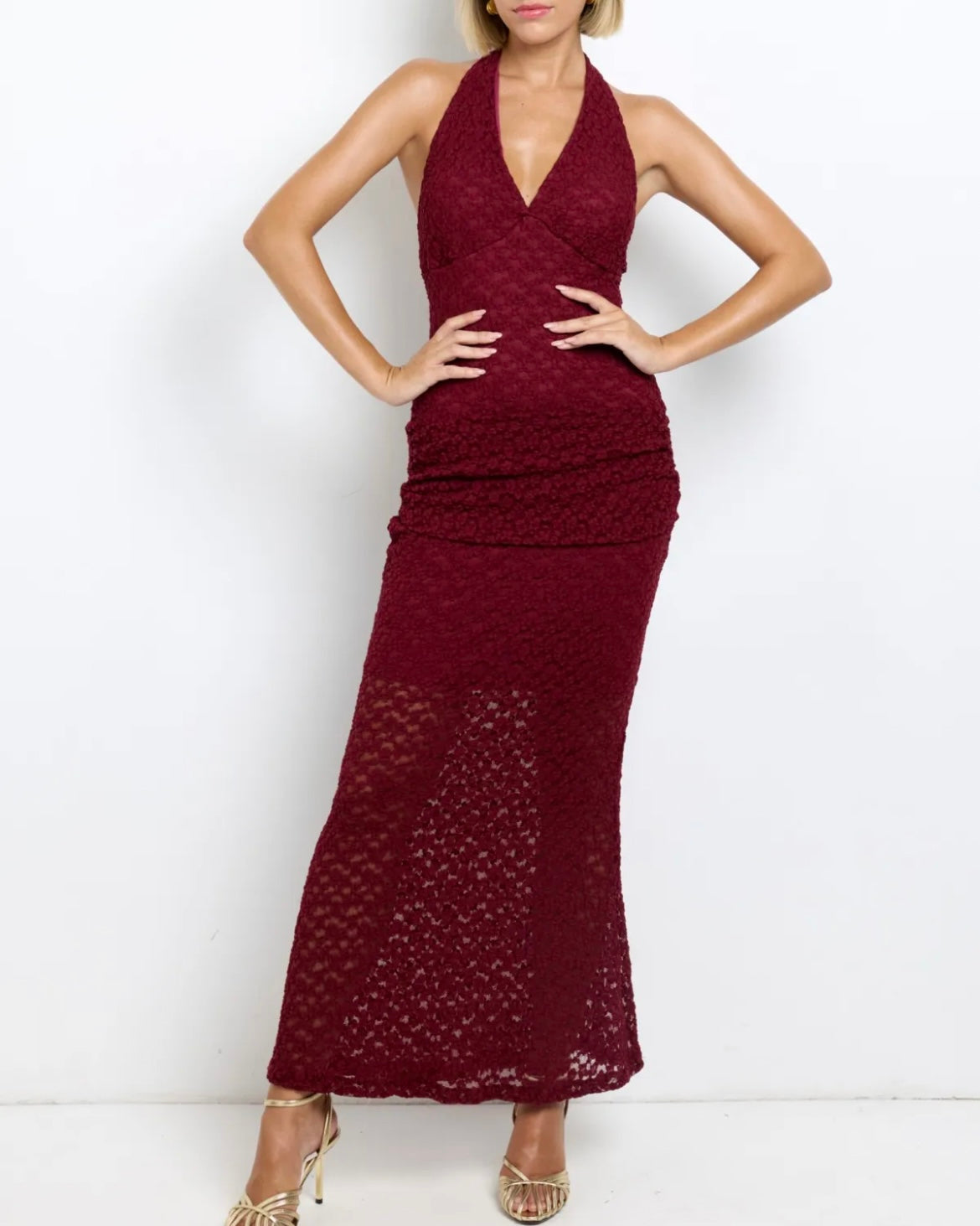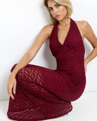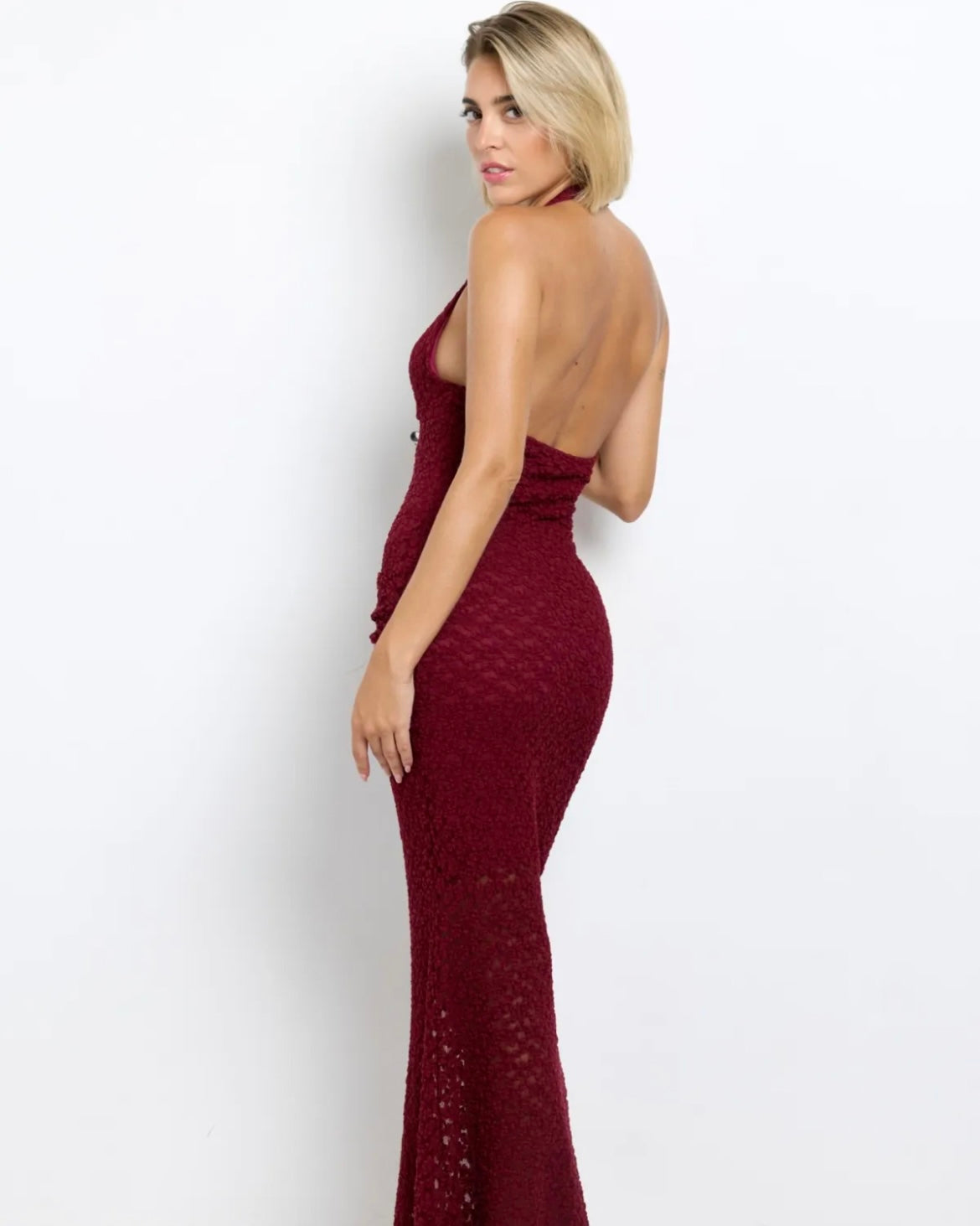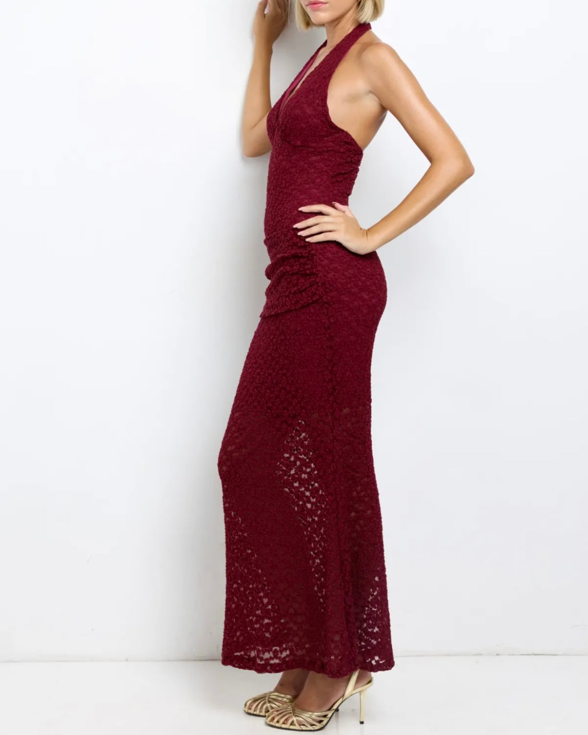 Maxi δανδελωτό εξώπλατο φόρεμα με V λαιμόκοψη