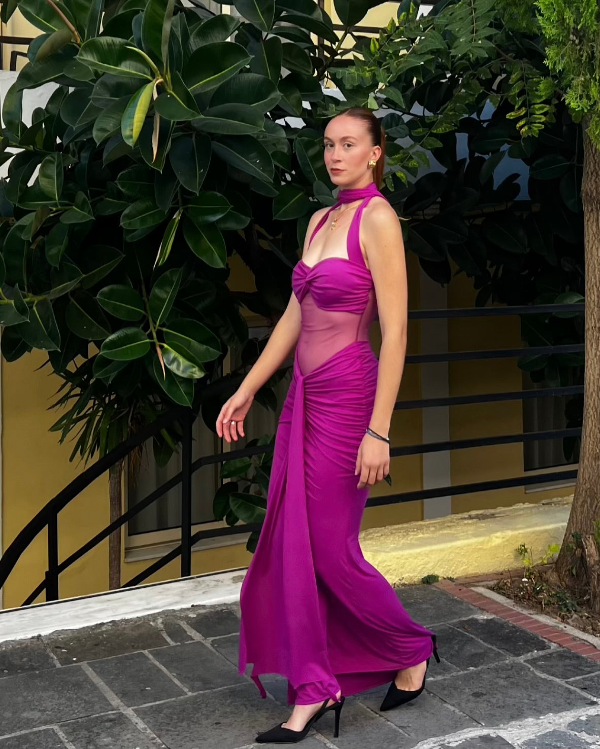 Maxi φόρεμα με διαφάνεια στην κοιλιά