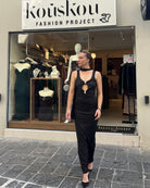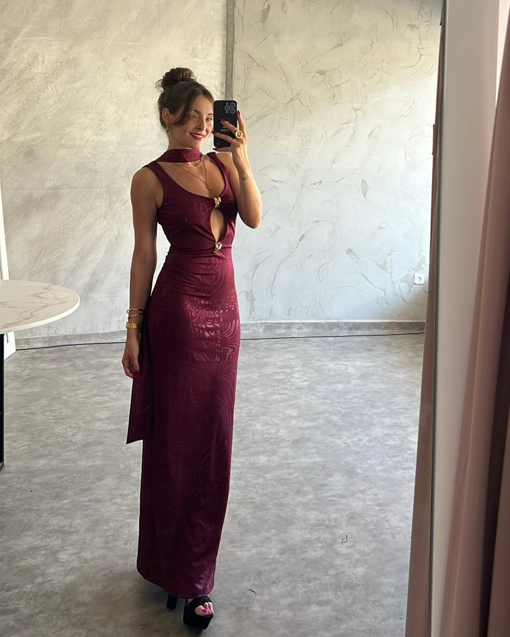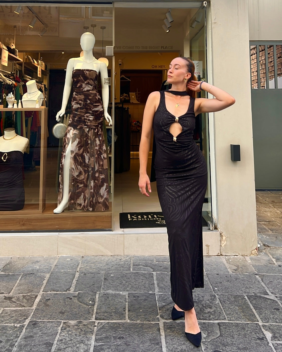 Maxi φόρεμα με ανοίγματα και μεταλλικές λεπτομέρειες
