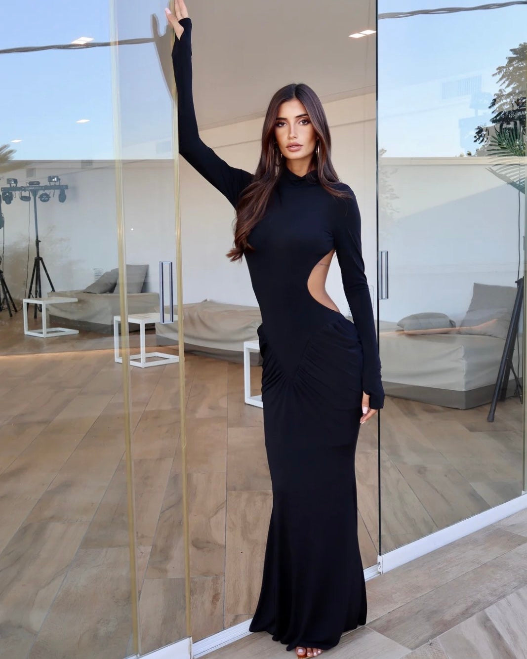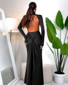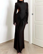 Maxi μακρυμάνικο εξώπλατο φόρεμα με ψηλό λαιμό