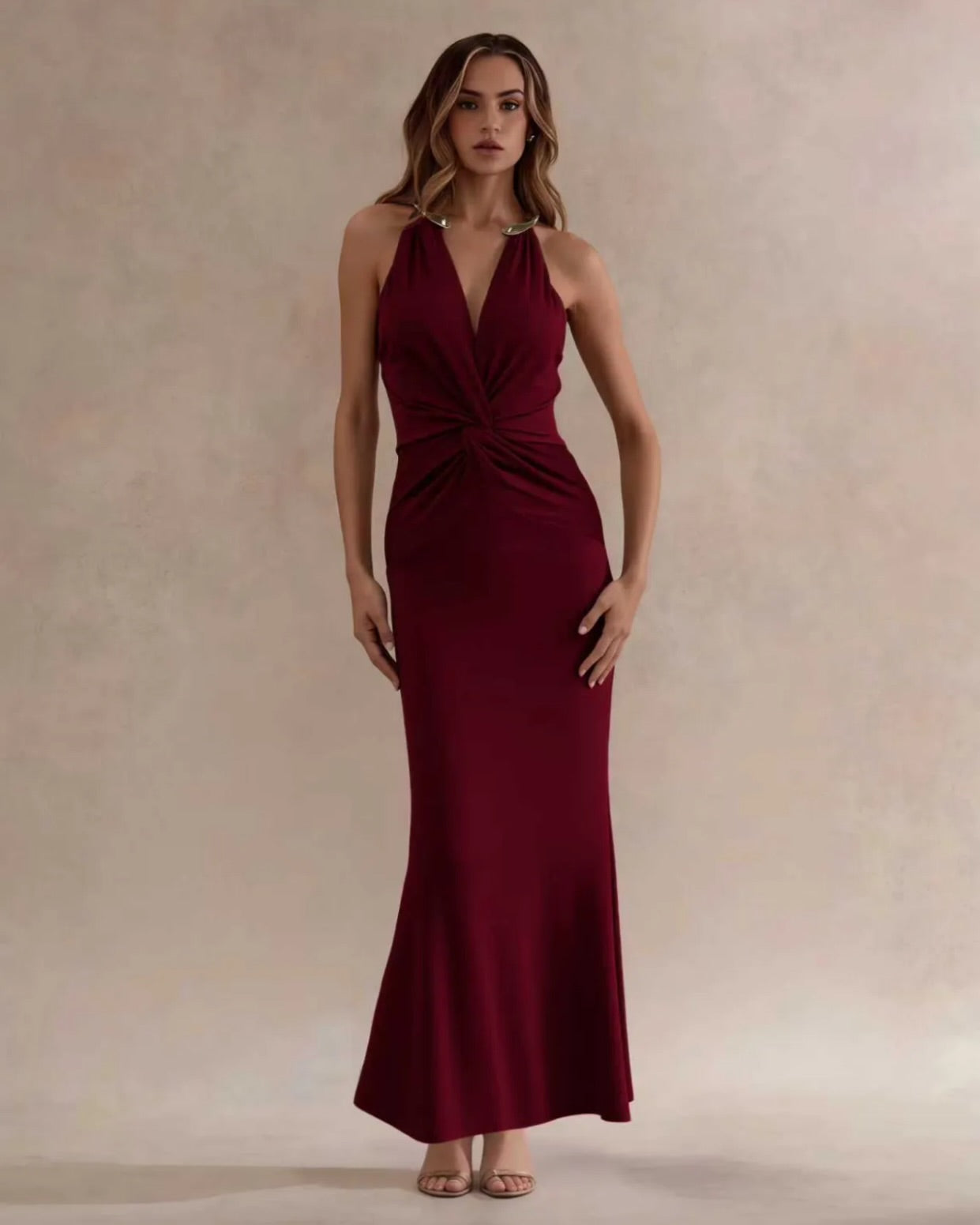 Maxi φόρεμα με μεταλλικό λαιμό