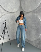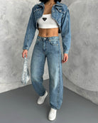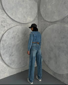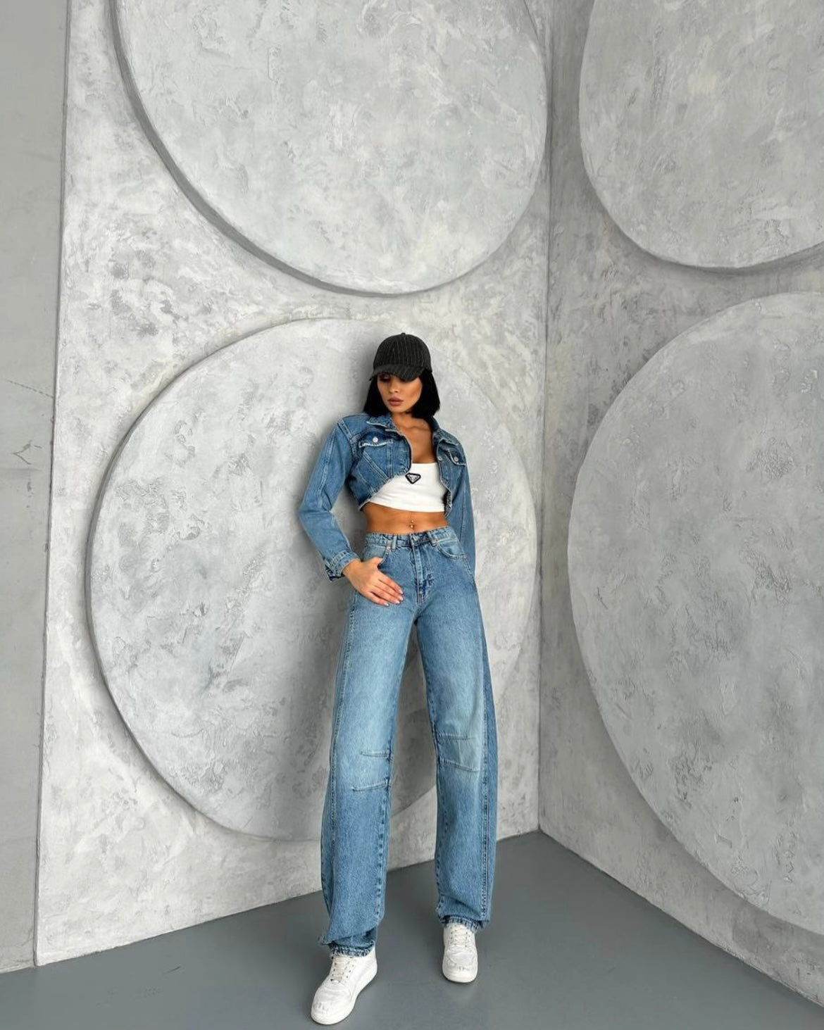 Wide leg τζιν με τέσσερις τσέπες και θηλιές για ζώνη