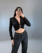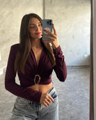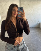 Crop top με V λαιμόκοψη και μεταλλική αγκράφα