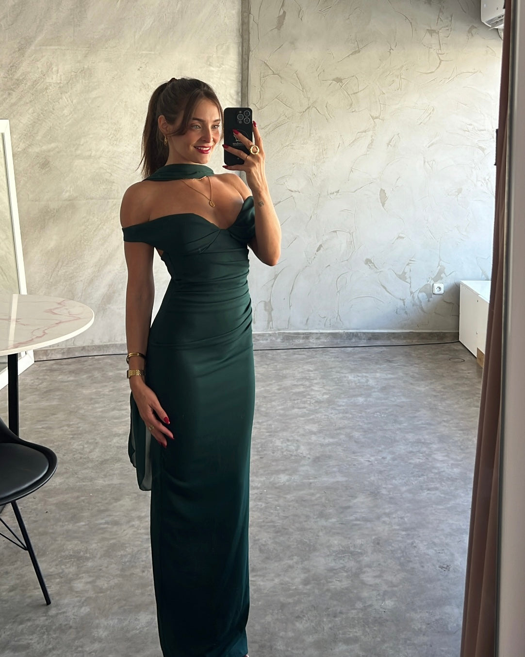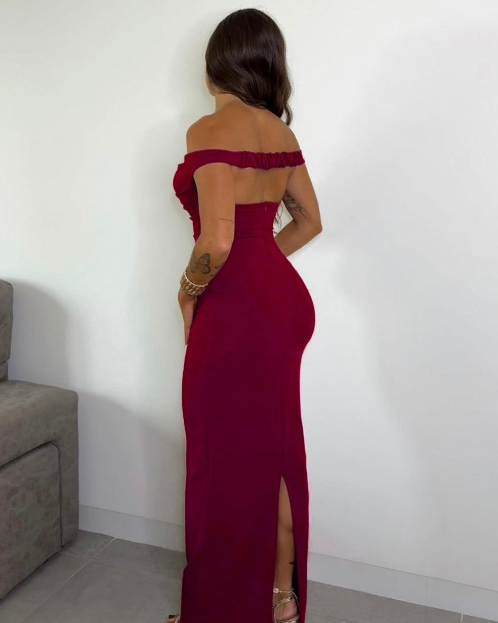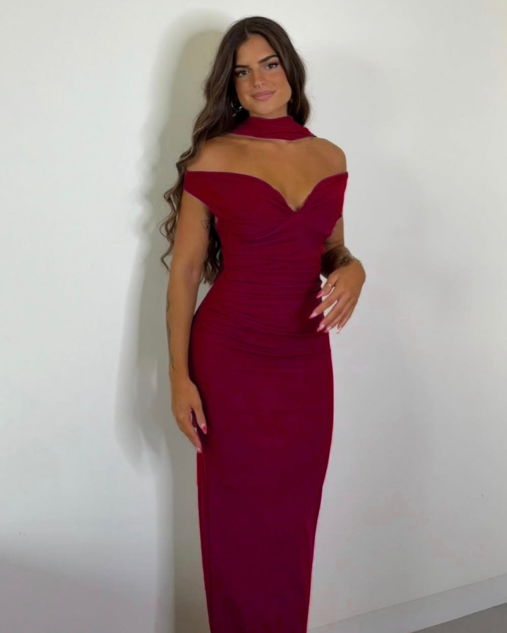 Maxi έξωμο φόρεμα με διακοσμητικό φουλάρι