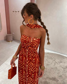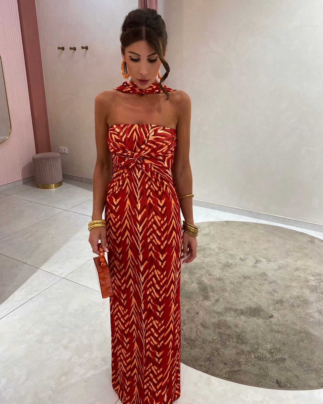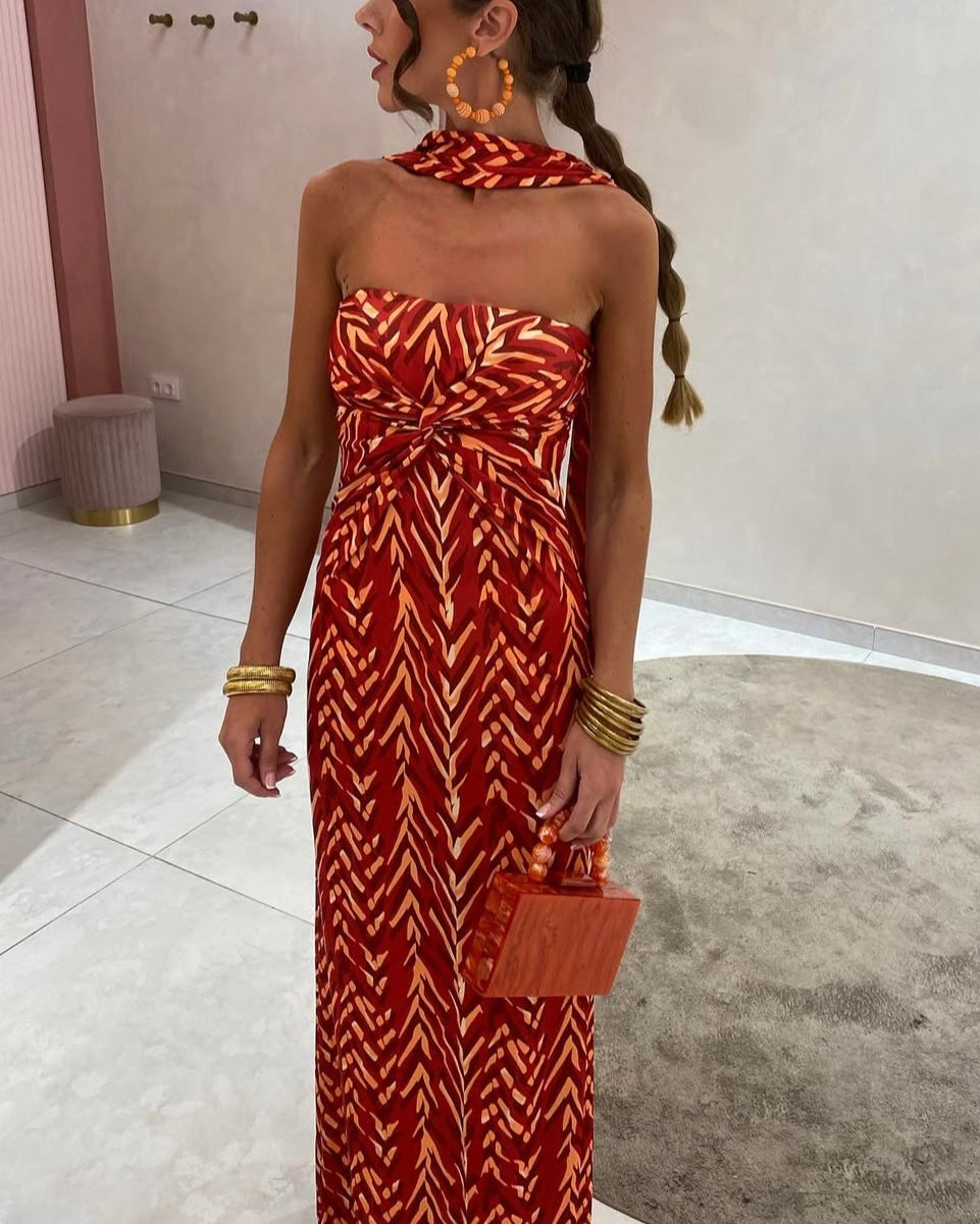 Maxi φόρεμα με σούρα στη μέση και διακοσμητικό φουλάρι