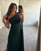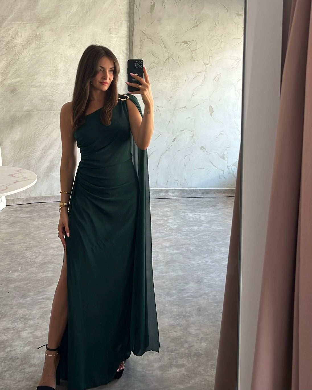 Maxi μονόωμο φόρεμα με μακριά ρέουσα λεπτομέρεια που μπορεί να φορεθεί ποικιλοτρόπως