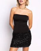 Mini strapless φόρεμα με πούλιες στο κάτω μέρος